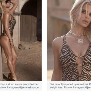 Jessica Simpson shows off toned legs in animal print swimsuit after 45kg weight loss